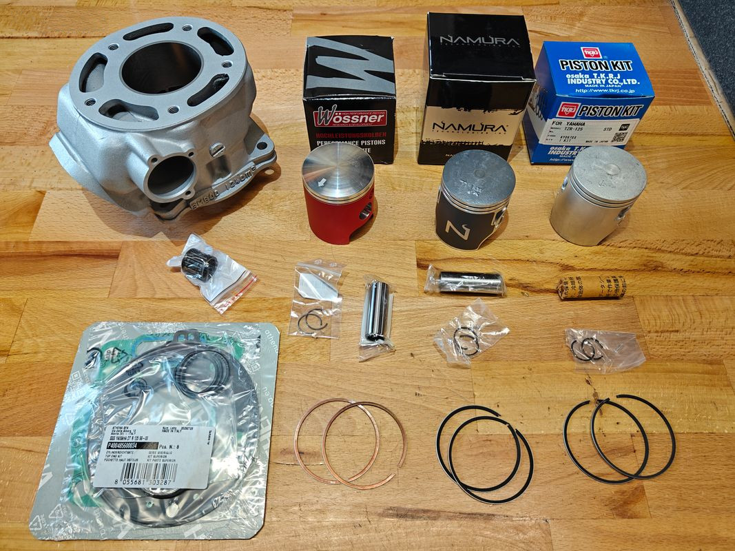 Haut moteur d’origine pour yamaha 125 DTR, DT, référence 3MB00, mais aussi disponible 3BN00 et 2RH00 (à préciser au moment de la commande), reconditionné à neuf avec kit piston Namura ou Tkrj (qualité standard 265€) ou encore Wossner +40€ (haut de gamme 305€), plus la cage à aiguille et la pochette de joint haut moteur !